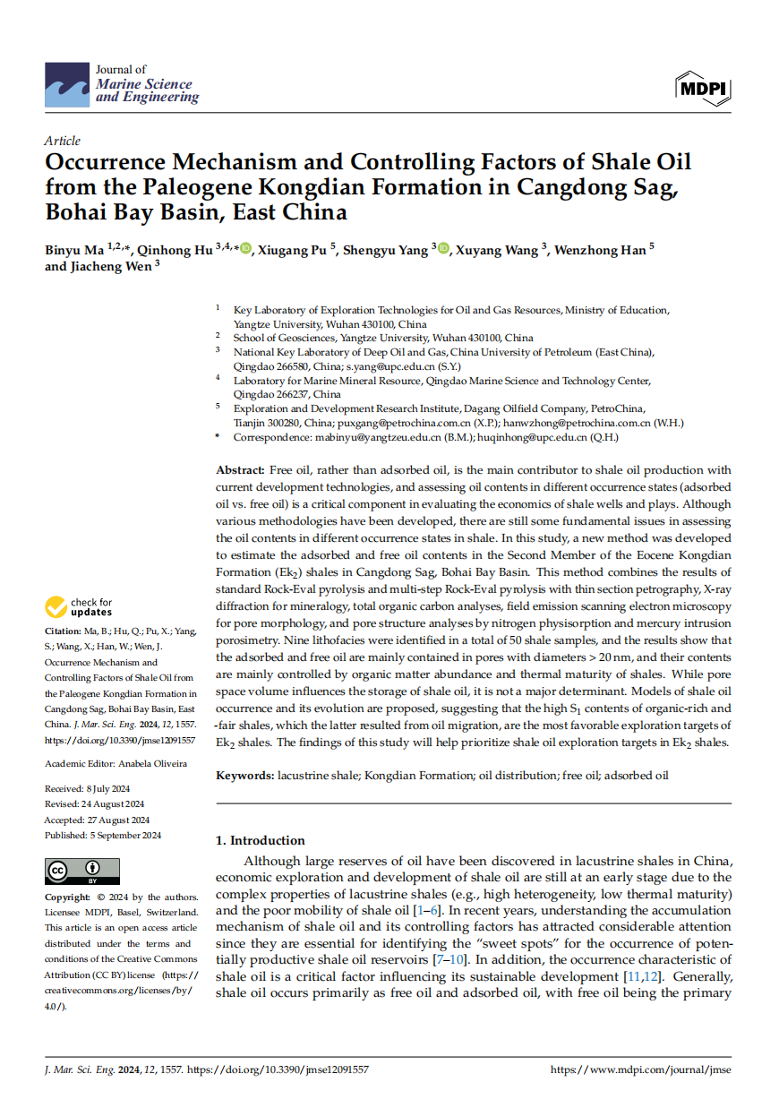 日本无码av 地质系马斌玉博士以第一作者身份在海洋地质学领域主流期刊《Journal of Marine Science and Engineering》(JMSE)上发表题为“Occurrence Mechanism and Controlling Factors of Shale Oilfrom the Paleogene Kongdian Formation in Cangdong Sag,Bohai Bay Basin, East China”的研究论文,该项研究得到了国家自然科学基金、中国博士后基金和油气资源与勘探技术教育部重点实验室开放基金的资助。