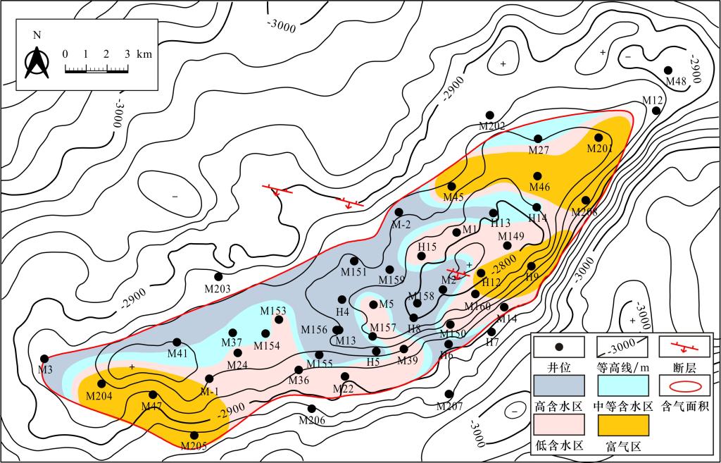 图1 磨溪嘉二气藏气水分布平面图