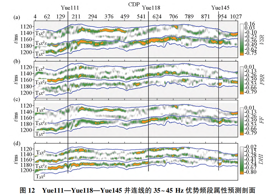 图2 35-45Hz优势频段属性预测连井剖面