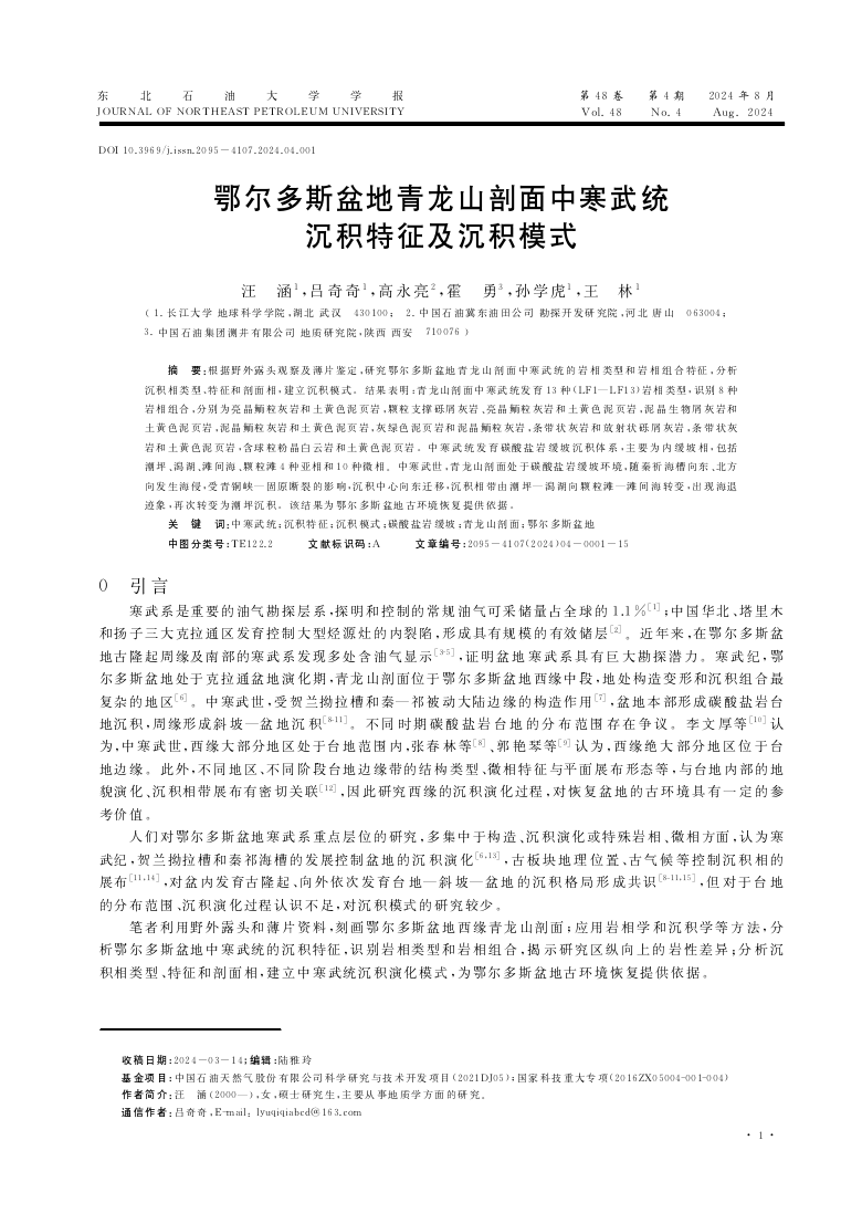 为论文第一署名单位,硕士研究生汪涵为论文第一作者,其导师吕奇奇副教授为该文通讯作者,本项研究得到中国石油天然气股份有限公司科学研究与技术开发项目和“十三五”国家科技重大专项资助。