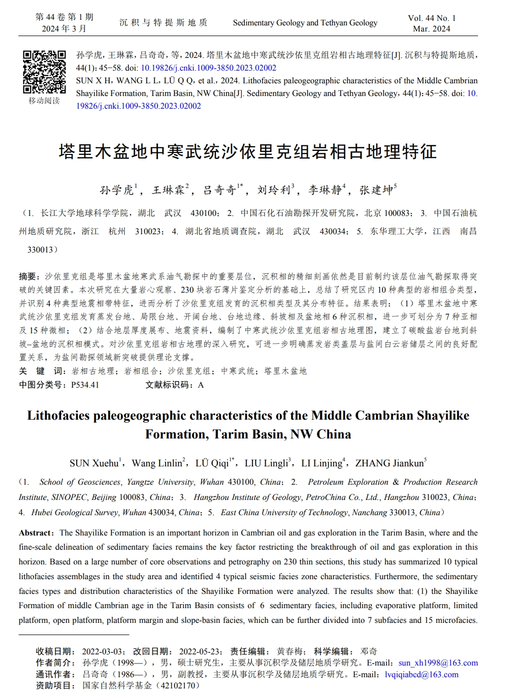 硕士生孙学虎在《沉积与特提斯地质》上发表了题为“塔里木盆地中寒武统沙依里克组岩相古地理特征”的研究论文,采用岩相学、沉积学的方法,分析了塔塔里木盆地沙依里克组岩相古地理过程。日本无码av