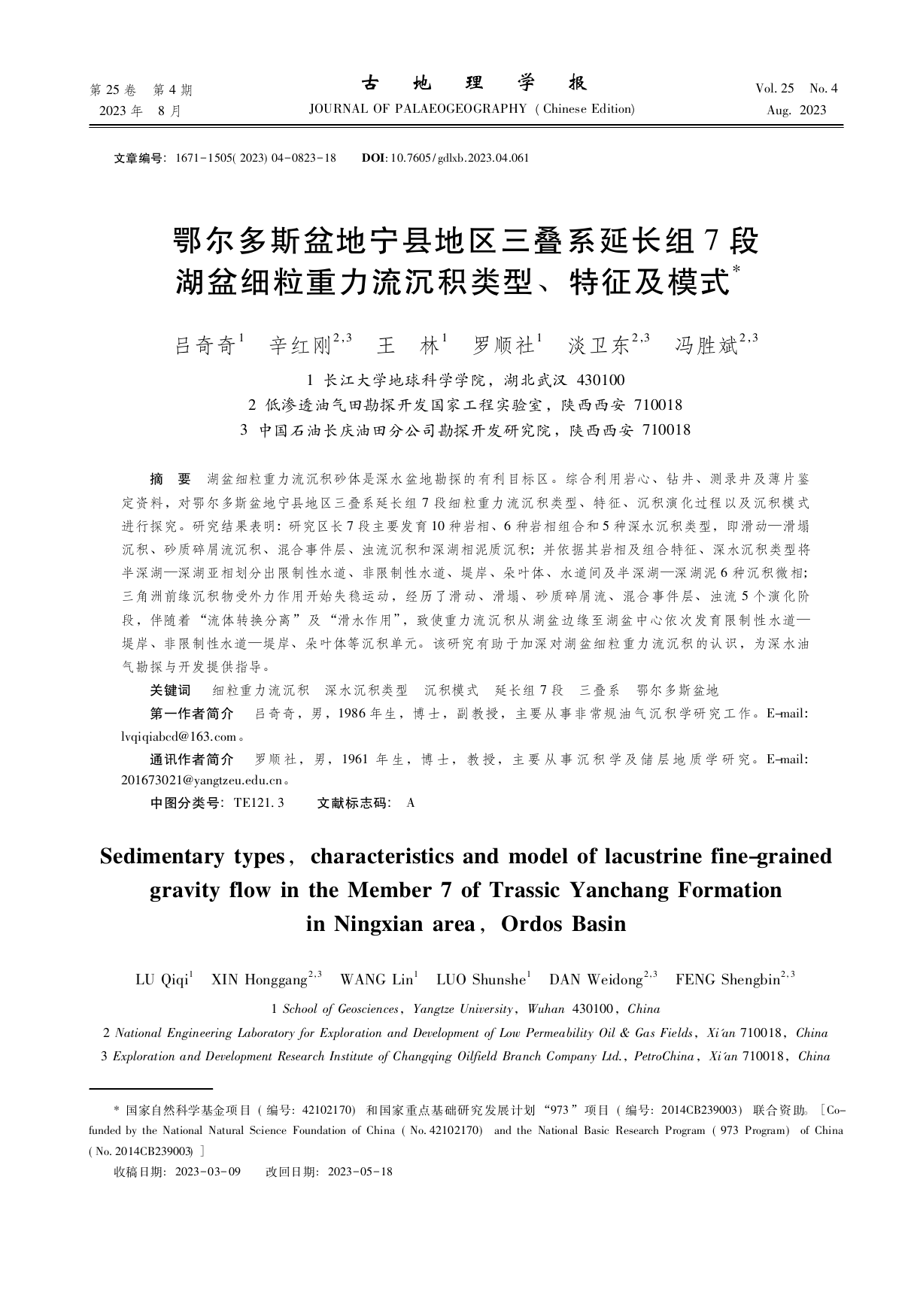 教师吕奇奇副教授以第一作者身份在中文核心期刊《古地理学报》发表题为《鄂尔多斯盆地宁县地区三叠系延长组7段湖盆细粒重力流沉积类型、特征及模式》的研究论文,该项研究得到了国家自然科学基金项目和国家重点基础研究发展计划“973”项目的资助。