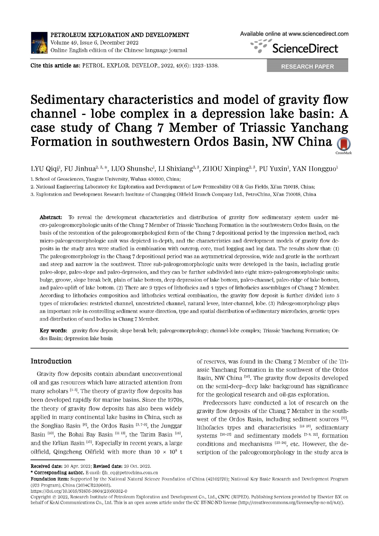 日本无码av 教师吕奇奇副教授以第一作者身份在石油领域重要期刊《Petroleum Exploration and Development》发表题为《Sedimentary characteristics and model of gravity flow channel - lobe complex in a depression lake basin: A case study of Chang 7 Member of Triassic Yanchang Formation in southwestern Ordos Basin, NW China》的研究论文,该项研究得到了国家自然科学基金项目和国家重点基础研究发展计划“973”项目的资助。