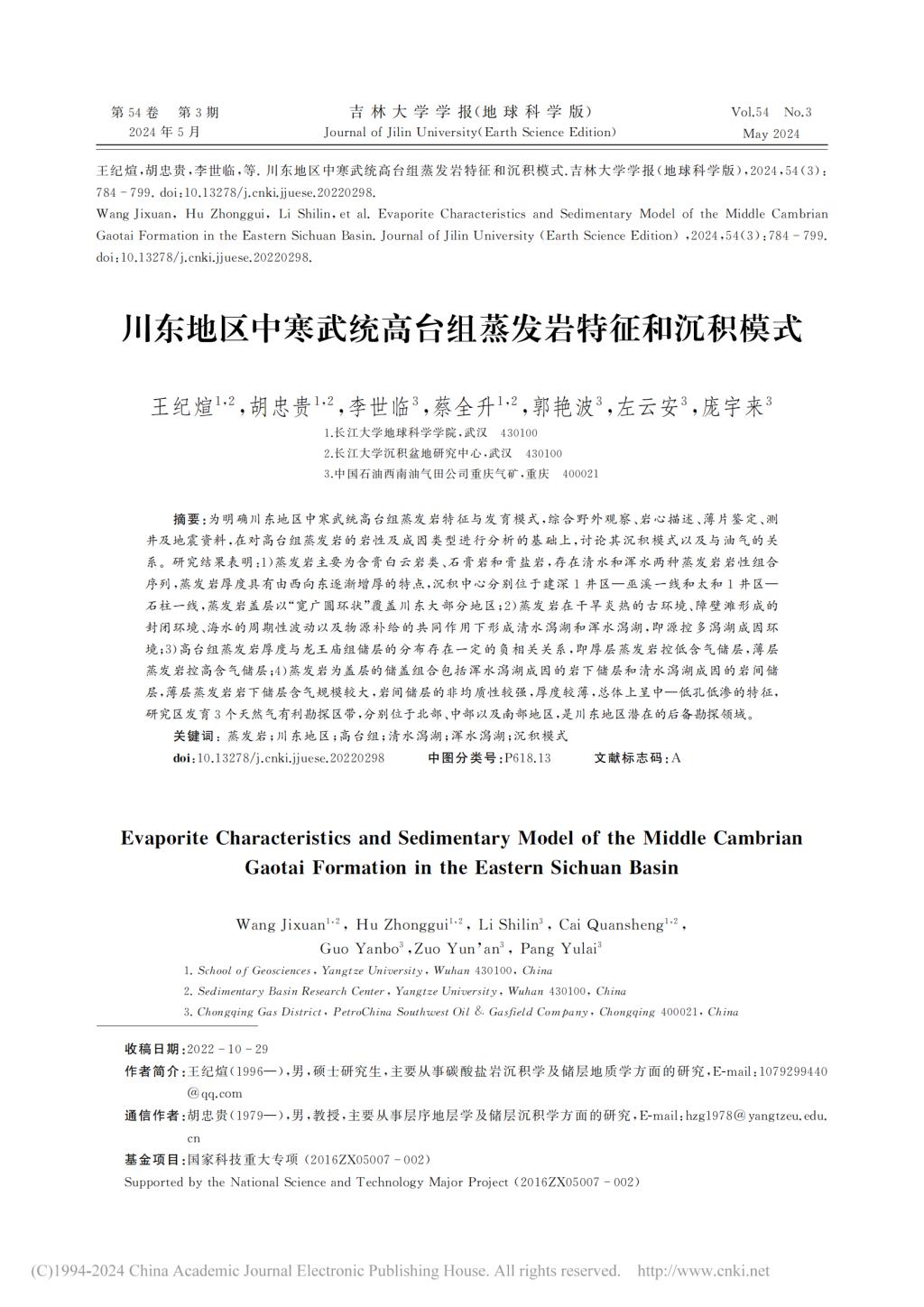20级硕士研究生王纪煊在期刊《吉林大学学报(地球科学版)》上发表题为“川东地区中寒武统高台组蒸发岩特征和沉积模式”的研究论文。日本无码av