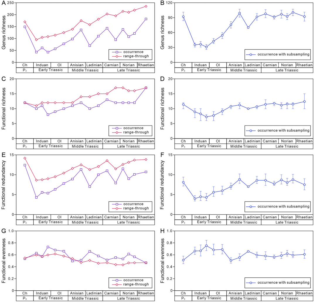 图2 二叠纪-三叠纪之交双壳类功能多样性指标变化规律