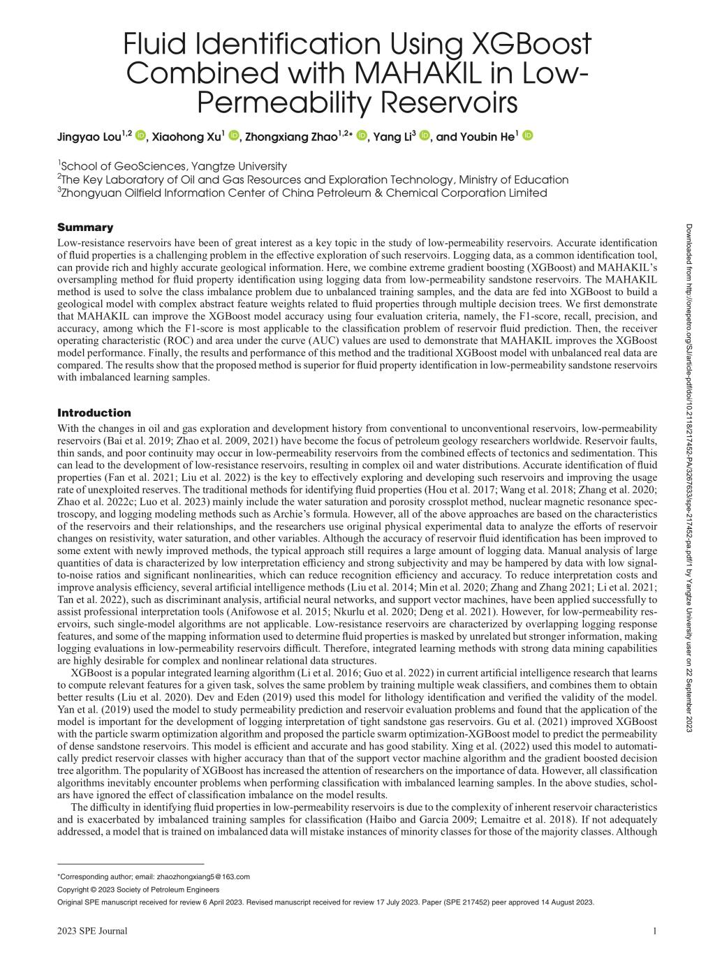 娄静瑶博士在石油领域重要期刊《SPE JOURNAL》上发表题为“Fluid Identification Using XGBoost Combined with MAHAKIL in Low- Permeability Reservoirs”的研究论文。日本无码av