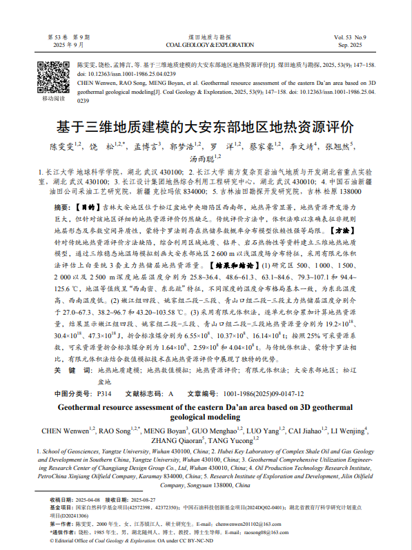 硕士生陈雯雯在饶松教授的指导下,在期刊《煤田地质与勘探》上发表题为“基于三维地热地质建模的大安东部地区地热资源评价”的研究论文,日本无码av