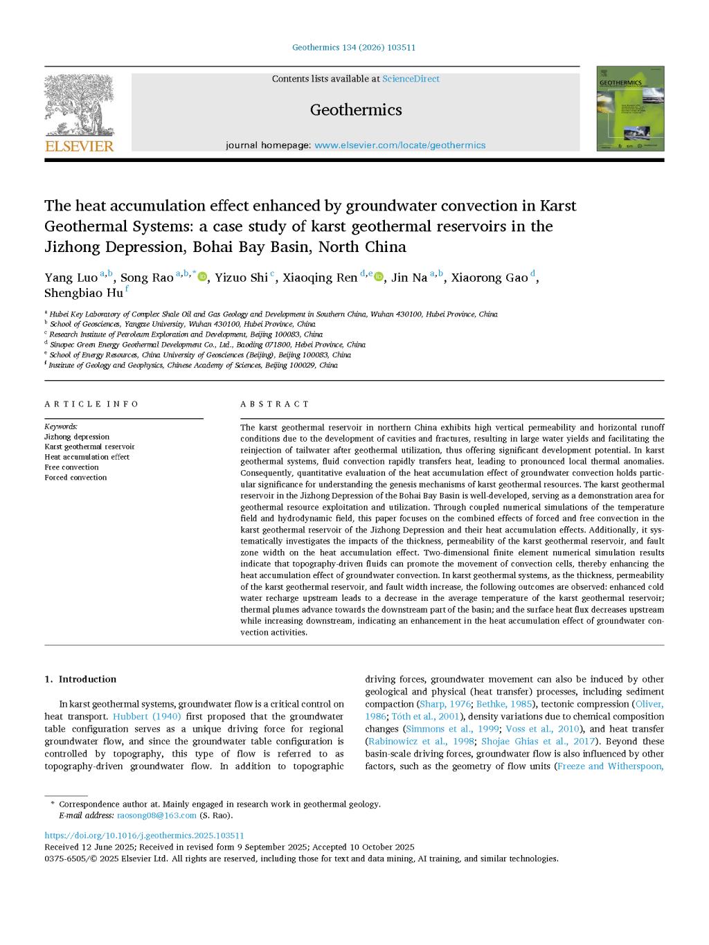 硕士生罗洋在饶松教授的指导下,在期刊《Geothermics》上发表题为“The heat accumulation effect enhanced by groundwater convection in karst geothermal systems: a case study of karst geothermal reservoirs in the jizhong depression, bohai bay basin, north China”的研究论文,日本无码av