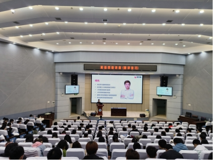 武汉校区学术报告厅开展了英语四级翻译和写作技巧讲座。参加讲座的人员有学工办姚佳、黄瑱以及2022级357名全体本科生。