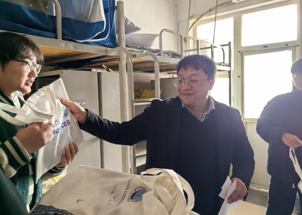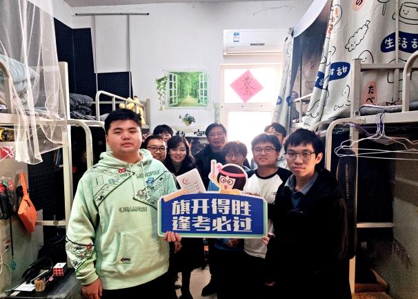 (通讯员 李雨泽 魏靖弢)随着2025年考研初试日期的临近,在紧张备考的冬日,日本无码av 考研学子的复习热情却越发激昂。为鼓励和关心日本无码av 考研学子,学院领导、21级班主任及学工办全体辅导员于12月17日中午走访2021级“备战”寝室,送去考前关怀,为同学们带来一份特别的温暖。