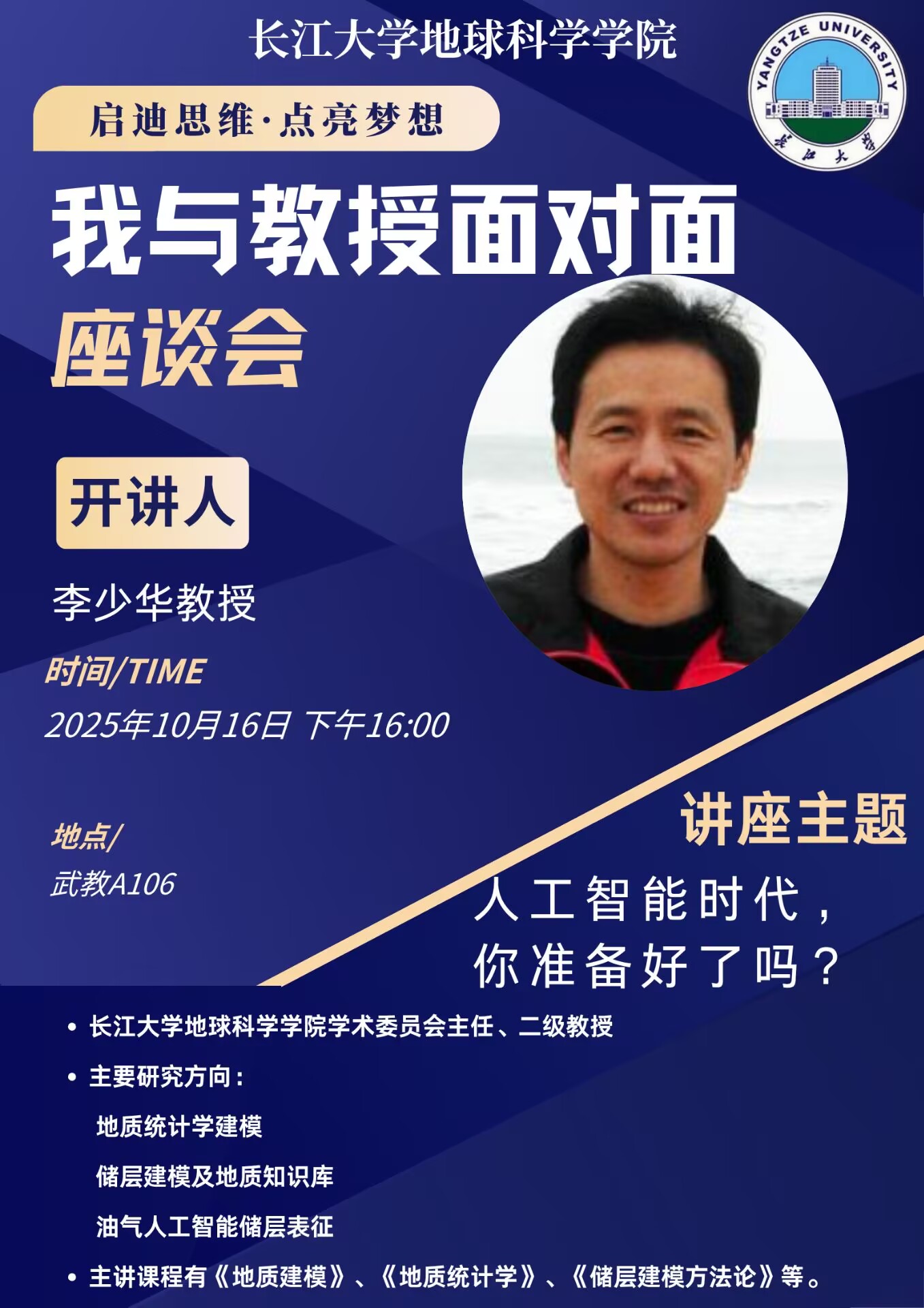 (通讯员 刘瑶琴)面对人工智能的时代浪潮,地科人手中握有怎样的“密钥”?10月16日,李少华教授在“我与教授面对面”活动中,为24级地科学子揭示了答案,引导同学们思考如何将专业所学与AI技术深度融合,从容应对未来。 李教授聚焦人工智能与地科专业的融合及学生发展,介绍了AI在中国油气行业的应用现状与挑战。他指出,人工智能已在无人驾驶、无人机巡检等领域显著提升效率、降低风险,但地质领域因环境复杂、数据获取难、成本高等因素,应用仍面临挑战。国家正积极推动人工智能与各行业融合,高校与企业也在不断探索,为学生成长提供了广阔空间。李教授强调:“我们地科学子要抓住人工智能发展重大战略机遇,突出应用导向,推动专业知识与AI技术的深度融合。”最后,李教授鼓励大家主动学习、提早规划,为大学学习生活树立明确的目标。 互动环节,同学们就竞赛参与和编程学习提出问题。李教授建议多利用导师资源,积极参与大创项目,拓展跨学科合作,并强调“主动性是学习成长的关键”。他勉励同学珍惜大学时光,明确发展方向,结合兴趣与责任,为未来奠定坚实基础。 本次活动增强了同学们对AI与专业知识融合趋势的理解,为学业与职业规划提供了实用指导,也促进了师生互动,助力地科学子在专业道路上稳步前行。 (审核 冯舒 编辑 赵娥)