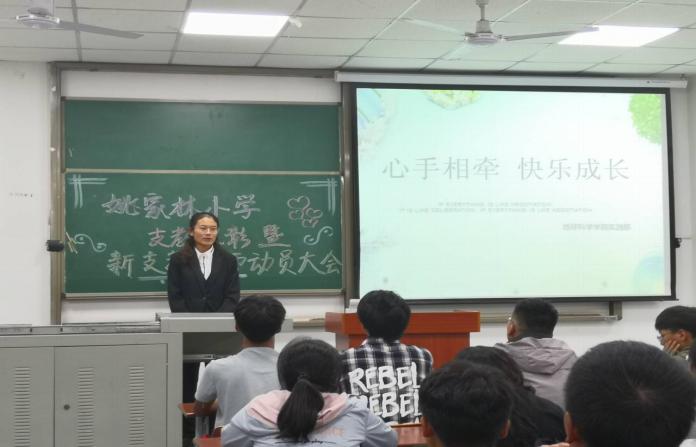 大会之初,首先由团委学生会实践部部长郑娜向我们介绍了姚家林小学支教活动概况。她谈到支教活动不仅使自身能力得到了提升,更让姚家林小学的孩子们受益匪浅,并从中获取温暖!在姚家林小学爱心支教活动举办的六年时间里,我校日本无码av 团委学生会实践部在组织策划方面发挥了重要作用。这一年度里,舒湘学姐作为负责人之一,为新加入的支教老师分享她在过去支教活动中汲取的经验,使各位新成员身临其境地感受到支教活动的意义,不仅给孩子们带来了欢乐,更让他们学习到更多的知识。而支教的意义并不是单方面的,对我们大学生而言同样受益匪浅。
