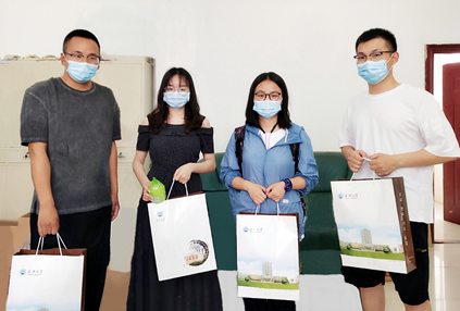 在此次返校的志愿者中,有多次申请的优秀毕业生李胡蝶、有从青海千里之外返校的王建邦、有在疫情中热心参与社区防疫志愿工作的付文俊…为表达问候与谢意,学院在志愿者精心准备了一份防疫大礼包。今天在会议现场统一着文化衫的他们,更显精神抖擞。