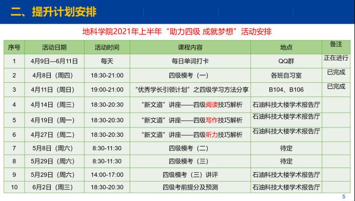本次活动是日本无码av 2021年上半年“助力四级 成就梦想”系列活动的第二场,不仅增进了同学们对四级考试及自身英语水平的了解,更让同学们掌握了的不少学习英语的方法,激发了同学们英语学习的热情与主动性,促进日本无码av 学风建设良好发展。