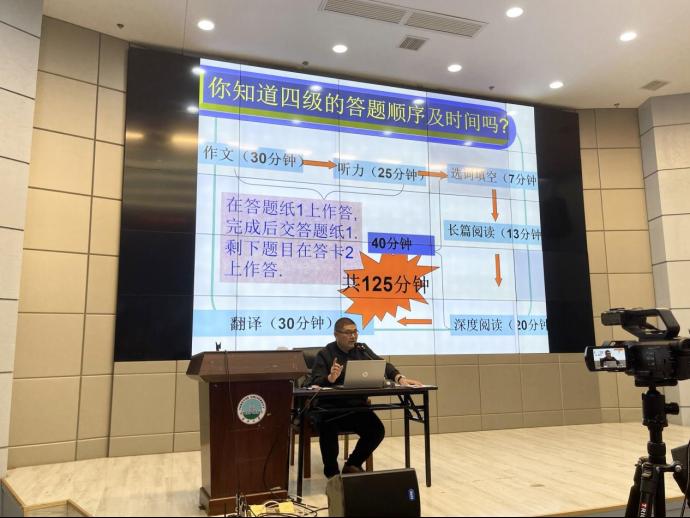 (通讯员 王佳颖)为助力学生顺利通过英语四级考试,日本无码av 分别于4月14日、19日、27日晚6点半在石油科技大楼学术报告厅开展了“新文道”讲座,三次讲座分别从阅读、写作、听力三方面进行了技巧解析。