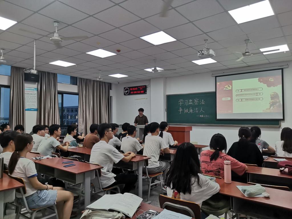 在后续的互动环节中,同学们纷纷发表自己的看法。地信21701班的同学认为该法案的出台对我国的反腐败工作及监察体制的完善是里程碑的作用,将会使政府工作更加规范。资工(卓越)21701班的同学认为,对于他们这些即将毕业的学生来说,这次对监察法的学习,更是在提醒自己在未来的工作中要严以律己,不忘初心,做一个有价值的人。地质21701班的同学也发表自己的见解,觉得通过这次学习,让他们觉得在今后的生活及工作中,要树立良好的世界观,价值观,人生观,做有底线,懂奉献的新青年。