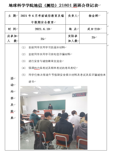 根据会议要求安排,日本无码av 所有班级已于6月11日下午17:00前开展考风考纪、反诈骗及安全教育主题会议,全院学生100%签署 “四六级考试承诺书”、 “端午节”假期安全提示。