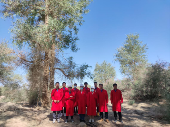 在辛苦的参观学习之余,同学们也领略了塔克拉玛干沙漠的优美风景。胡杨与绿柳交相辉映,黑狗看管的棉花田郁郁葱葱,广袤的沙漠令人心旷神怡,像是一副绝世的油画,队员们流连忘返,纷纷合影留恋。