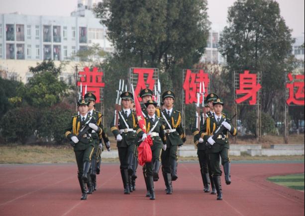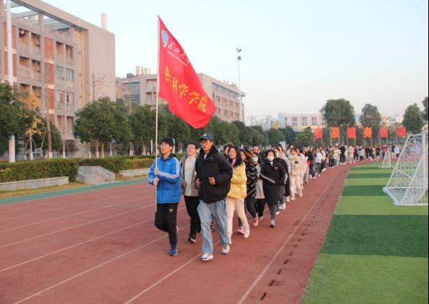 为提高同学的综合素养,升旗仪式后举行健康跑活动,同学们在“随风奔跑自由是方向,追逐雷和闪电的力量......”的歌声中,全院学生如一条长龙在操场上奔跑。队伍最前方鲜红的院旗代表着学子们昂扬的心。