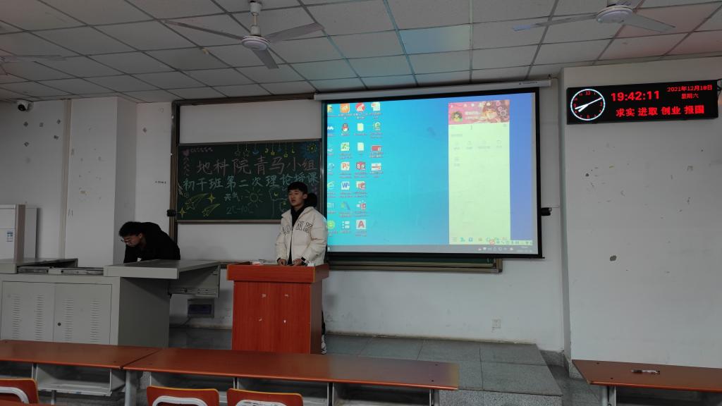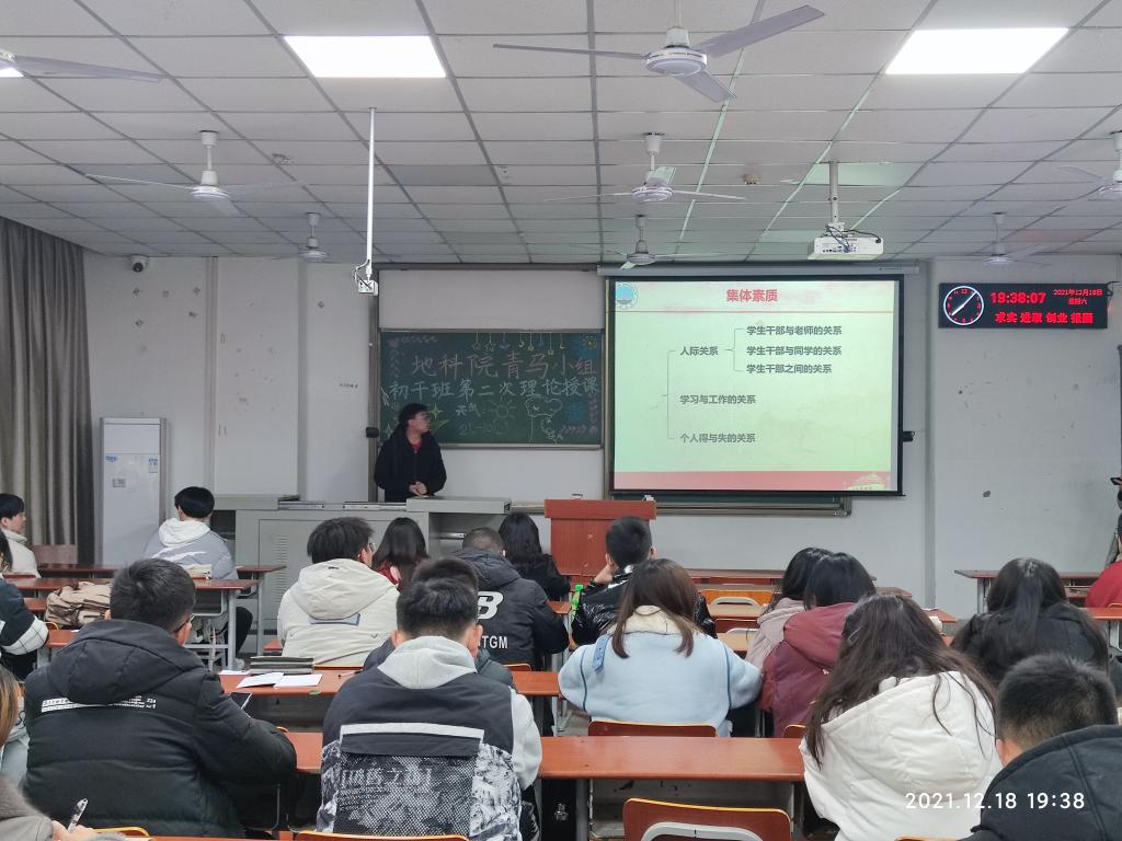 (通讯员:杜子萱 白硕)2021年12月18日19时,地科院青马小组及学生干部初级培训班在A104教室开展第二次理论授课。本次活动由班导陈星兆、高婧,地科团委学生会副主席王高寒、李勇,小组长李银凤、黄汉臣及青马小组、学生干部全体成员参加。