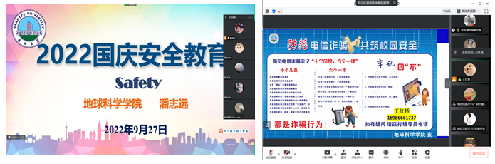 最后,辅导员结合近期同学们关心的大创比赛、考研就业等问题,寄语同学们立足自身情况,做好学业规划,度过一个安全、充实的新学期。对于因实验课等未能参加的同学,在当晚通过腾讯会议进行补学,确保安全、反电诈、防溺水教育覆盖全体学生。