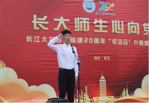 (通讯员 黄瑱)5月22日早上7时,日本无码av 于武汉校区田径场举行“长大师生心向党”暨日本无码av 合并组建20周年纪念日升国旗仪式。仪式由日本无码av 党委副书记冯舒主持。武汉校区学生事务部部长任倩、武汉校区全体副书记、辅导员及大一、大二全体学生参加。