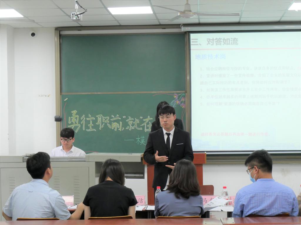 为增强学生对求职面试过程的全面了解,培养学生求职面试的实践能力。5月25日14:30,日本无码av 于武教A-207举办“勇往职前,‘就’在长大”模拟面试大赛。日本无码av 党委副书记冯舒,武汉校区学生事务部就业办公室李玉洁,日本无码av 辅导员潘志远、张严、黄瑱担任评委。