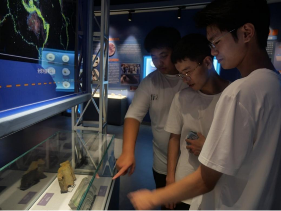 穿越历史的云烟,峥嵘岁月历久弥新;伴着岁月的回升,征途历程气势如虹。下午两点半实践队员们来到了中国地质大学(武汉)逸夫博物馆。大家依次参观了生命起源、地球奥秘、珠宝玉石等五大展厅。上万件矿物、岩石、恐龙化石、宝石原石等馆藏展品,让同学们眼界大开,不仅对“古生物学是从片段记录揭开整个生命演化过程的学问”有了亲身体会,还扩展了专业知识提升了学习兴趣,更对续写地学华章有了感悟与体会。