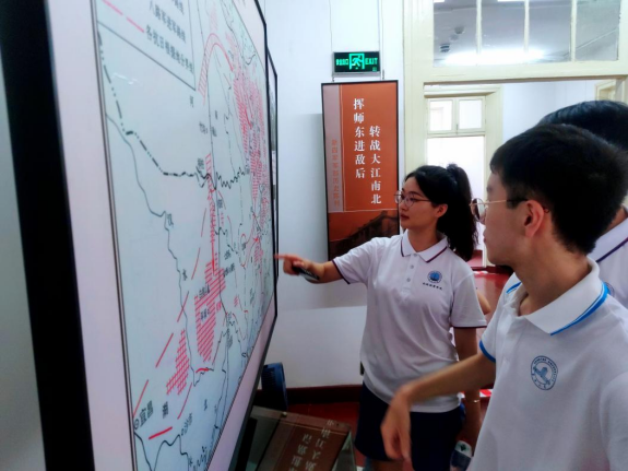 紧接着,实践队员们来到汉口新四军军部旧址,馆内复原陈列有叶挺、项英、郭沫若的办公室兼卧室,以及政治部、副官处、参谋处、军需处、军医处,举办有《汉口新四军军部历史陈列》,队员们在这旧址之中,领略到了军部的严肃氛围,也感受到了军人的气质传承。