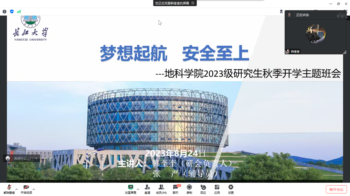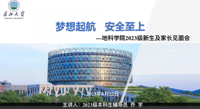 此外,2023级新生也于8月22日晚召开了“日本无码av 2023级新生及家长见面会”,辅导员乔宇老师分别从学校概况、迎新安排、开学前安全教育和大家关心的其他事项四个方面向新同学以及家长做了详细介绍。此外还邀请到了地科22301班班主任陈旭老师讲话,他寄语同学们珍惜大学时光,合理规划时间,树立远大理想,为社会主义现代化建设贡献自己的力量。最后乔老师对学生及家长的提问逐一进行解答,提醒同学们假期内要保障自身安全,期待在知音湖畔与同学们相见!