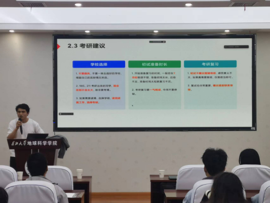吕梦楼以一名地科学长的身份给大家分享了自己的工作经验、考研感悟、大学生活。他认为地信专业就业面很广,薪资待遇也很不错,但是需要学弟学妹们扎实掌握软件开发相关的基本知识、编程语言、基本技能,才能有机会通过HR的考核。他以自己的二战经历建议同学们,在学校选择上要结合自身实际,选择最合适而非最好的学校,建议复习过程一气呵成,不要把战线拉得太长,导致强弩之末、后劲不足。在分享自己的大学生活时,他鼓励同学们要做好时间的主人,明确目标,细化学习计划,长期保持持续学习的热情,深耕更多课堂之外的技术知识,并尝试参与一些学科竞赛、科研项目和社会实践活动,开拓自己的眼界。