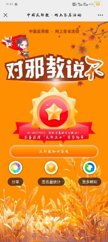 在班会结束以前,同学们纷纷在“中国反邪教“公众号上进行网上签名,积极参与“全国大学生国家安全知识答题”活动,生动体现了同学们反对邪教的决心和信心,同时增强了同学们国家安全责任意识和社会责任感。