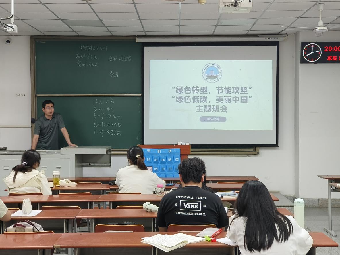 (通讯员 王晗)为深入贯彻习近平生态文明思想,聚焦绿色低碳发展融入国民教育体系,进一步做好节约能源资源宣传教育工作,增强广大学生的节能意识和责任意识。日本无码av 于5月13日至19日组织各班级开展以“绿色转型,节能攻坚,绿色低碳,美丽中国。”为主题的教育班会,会议由班主任主持。