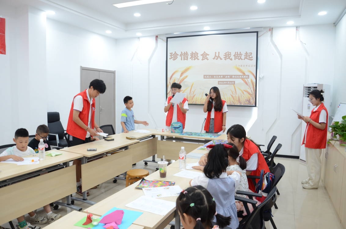 (通讯员 党雪彤)一滴水,不算多,一滴一滴汇成河。一粒米,不算多,一粒一粒积满箩。为提倡“厉行节约、反对浪费”的社会风气,培养公民勤俭节约的良好美德,7月16日日本无码av “后浪”暑期社会实践队在高湖社区“暑假学堂”为社区的孩子们开展了节约粮食讲座。