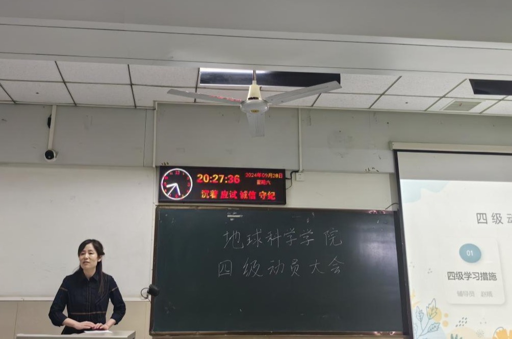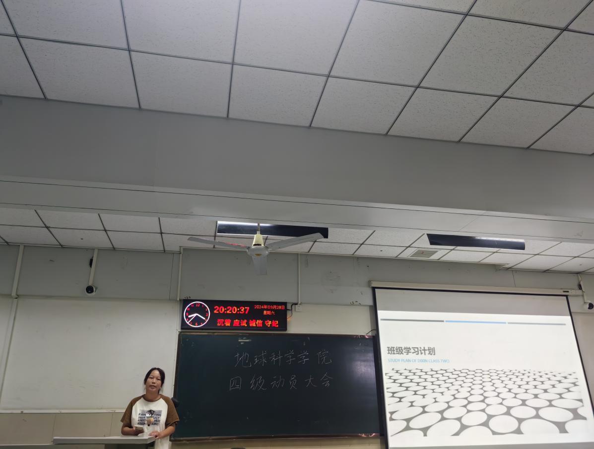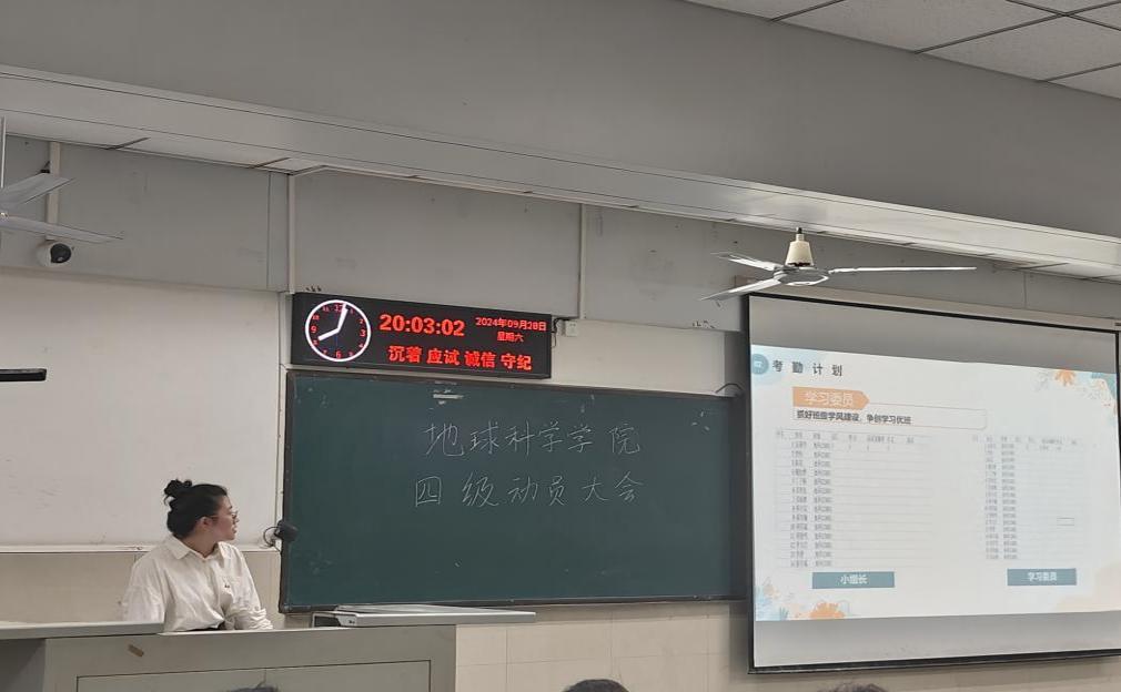 随后,学委代表资工12401唐磊,资工12404张紫仪,地信12402吴睿,地质12401吴天伊依次上台,全面展示了各班精心制定的英语四级学习计划。这些计划从学习小组的组建、学习计划的安排到学习阶段的检测等方面都进行了细致的规划。班级学习计划包括成立学习小组,通过成员之间的互相督促,实现共同进步,小组成员可以定期交流学习心得、分享学习资源,营造出浓厚的学习氛围;制定详细的学习时间表,合理安排每天的学习任务。从清晨的晨读练习到晚间的复习巩固,每个时间段都有明确的学习目标,确保学习的系统性和连贯性;定期进行学习阶段检测,通过模拟考试、小测验等方式及时发现问题,并在老师和同学的帮助下加以解决。