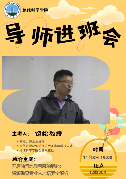 (通讯员 周文豪)为激发学生专业探索热情,助力学生知晓前沿资讯,促进日本无码av 学术繁荣。11月8日晚,日本无码av 石油系系主任饶松教授做客“导师进班会”系列活动,以“开启油气地质宝藏的钥匙”为主题在东校区12教304开展了精彩的主题班会,饶松教授、24级石油系全体本科生参会。