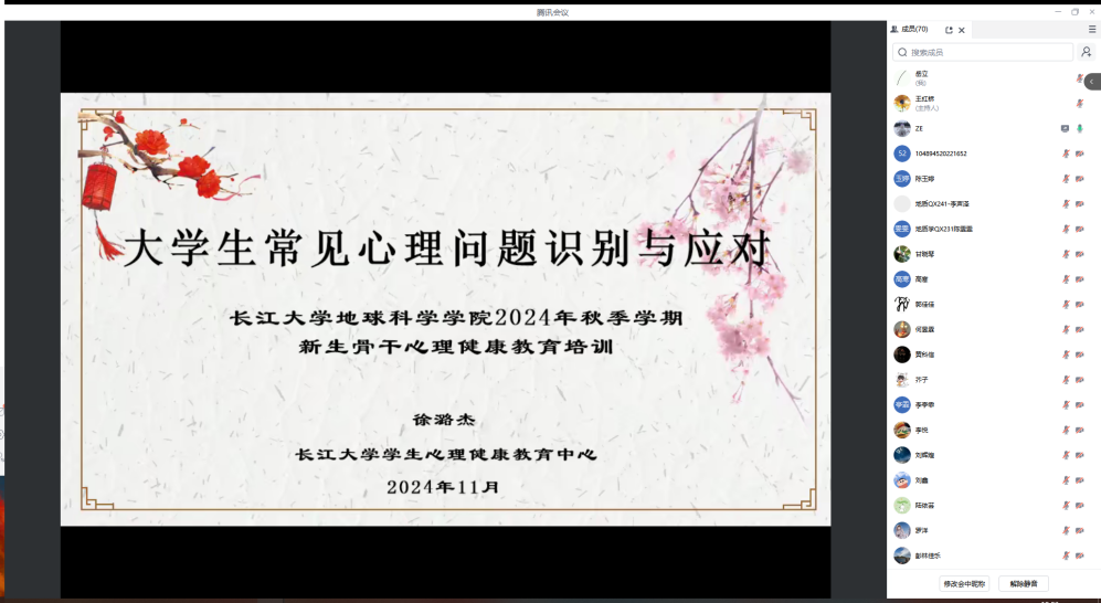 (通讯员 郭禹 审核 王红桥)2024年11月19日19:00,日本无码av 特邀心理健康中心徐潞杰老师主讲新生心理骨干教育培训,东校区135名本科生在12教104,武汉校区70名研究生心理骨干通过腾讯会议,共同参与学习。