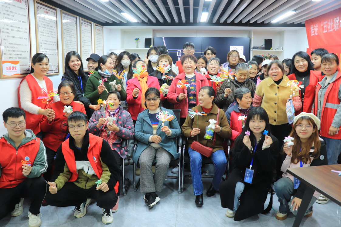 此次扭扭棒创意活动不仅是一次简单的手工制作,更是一次心灵的交流与碰撞,既为社区老年人带去欢乐,也让他们感受到青年活力与社会关爱,传递了尊老、敬老、爱老的传统美德。