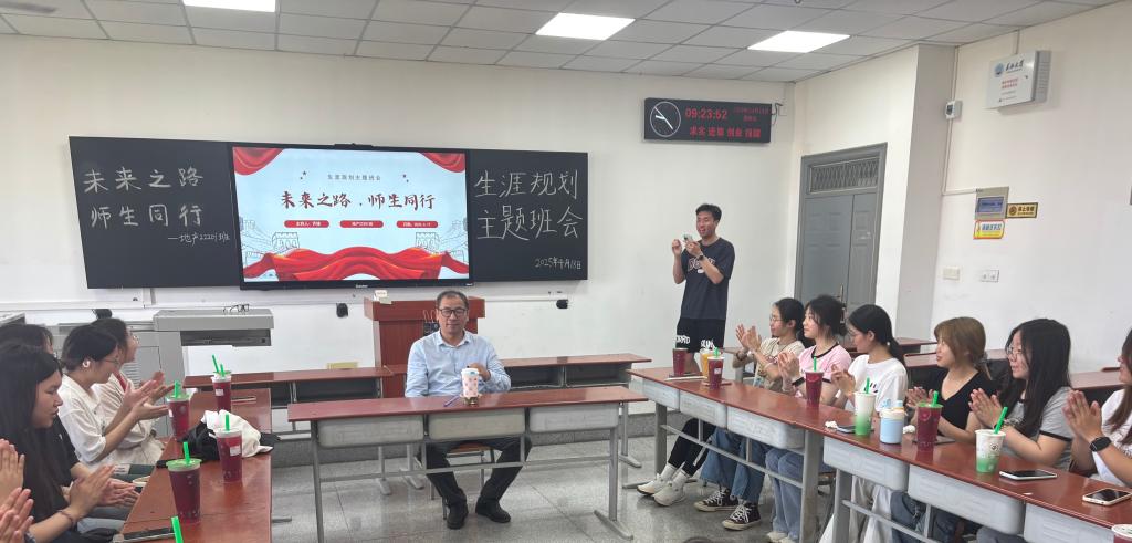 (通讯员梁浩/文 黄乐源/摄)4月18日下午,日本无码av 地信(产业) 22201 班在武教 A-402教室举办了主题为“师生之路 未来同行”的“导师进班会”活动。李功权教授通过深度解析GIS学科前沿与行业趋势,助力学生锚定发展方向。活动由地信(产业) 22201 班班长齐缘主持。