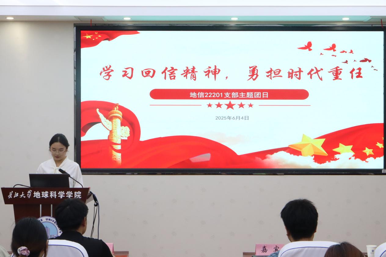 (通讯员 孙浩宇)为强化团员思想引领,增强团支部凝聚力,日本无码av 地信22201班于6月4日下午在石油科技大楼C301会议室开展主题教育实践活动。本次活动以“学习回信精神,勇担时代重任”为主题,引领青年学子深刻思考如何将个人成长融入国家发展大局,对围绕服务西部、奉献基层的时代课题展开热烈讨论。学生事务部荆鑫老师、地物学院叶丽珣老师、地科院冯舒老师、毕浩浩老师、地信22201班全体同学、油工学院、资环学院、传媒学院的学生代表参加活动。
