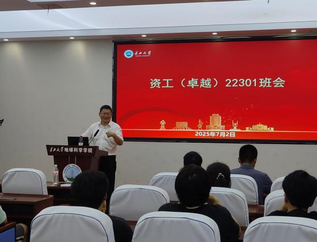 班会伊始,朱光有院长就开宗明义地指出:"同学们要牢记,地质人的脚步永远向着远方,但根基必须扎在当下。资源勘查工程是艰苦专业,但更是充满机遇的领域。看到你们这一学期在学业、科研、实践等方面取得的进步,我深感欣慰。"同时强调:"专业素养是立身之本,英语能力是发展之翼,希望同学们继续保持这种全面发展的良好态势。"