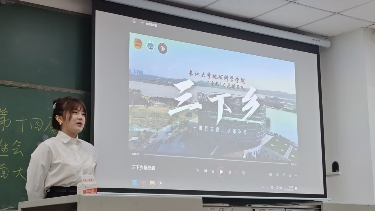 "追光"志愿服务队首先登台,团队主要负责人侯宝怡同学汇报了暑期在高湖社区开展的"爱心托管班"志愿服务活动和在黄冈蕲春县青石实验小学盖天校区开展的支教活动。团队从活动背景、筹备过程、实施内容和成果收获四个方面,全面呈现了为期15天的志愿服务过程。团队开展了国学润心、科普启智、创意手工、安全教育等丰富多彩的活动,为社区儿童和乡村留守儿童打造了一个充实而有意义的暑假。