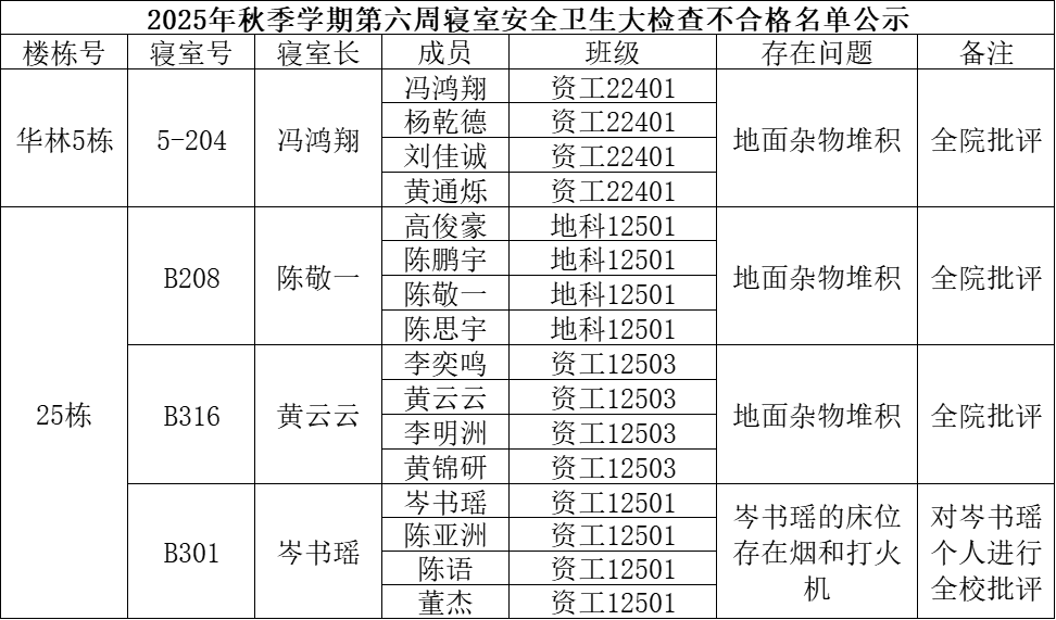 为加强学生宿舍安全管理和文明建设工作,确保学生宿舍安全、整洁、文明、有序,根据学校要求,日本无码av 于10月16日开展了第6周学生宿舍自查工作,现将检查情况通报如下