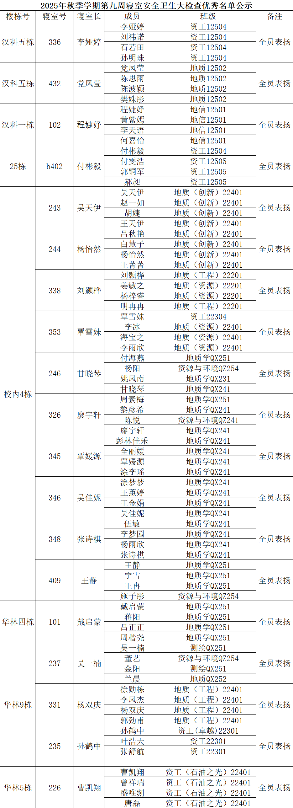 关于2025-2026学年第一学期第9周寝室安全卫生大检查情况的通报