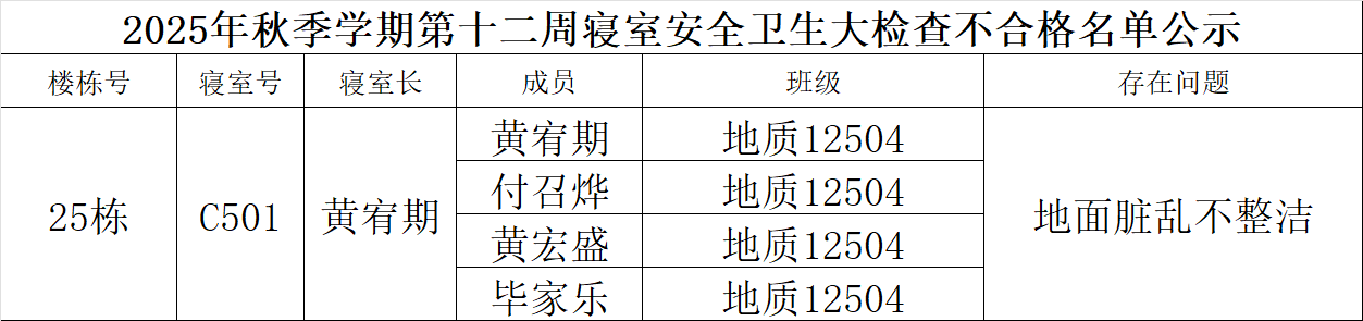 于11月27日开展了第12周学生宿舍自查工作,现将检查情况通报如下