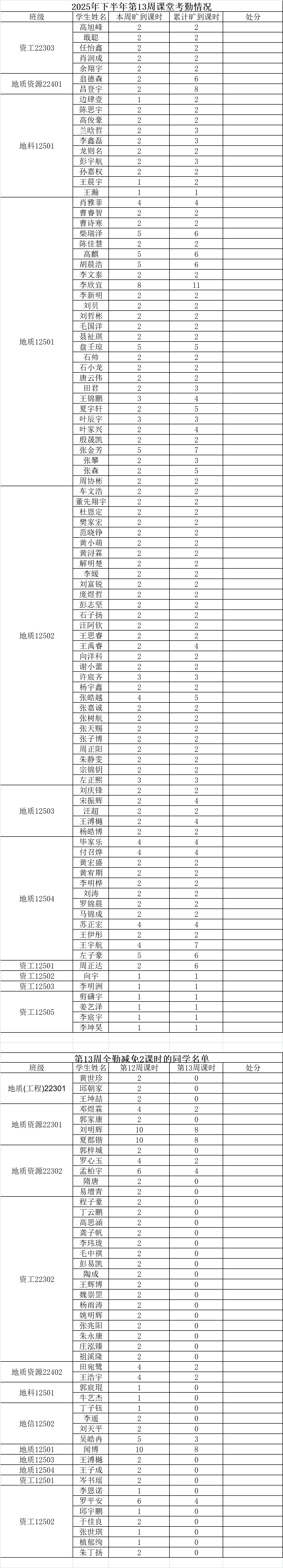 持续开展常态化课堂考勤工作。现将第十三周考勤情况通报如下: