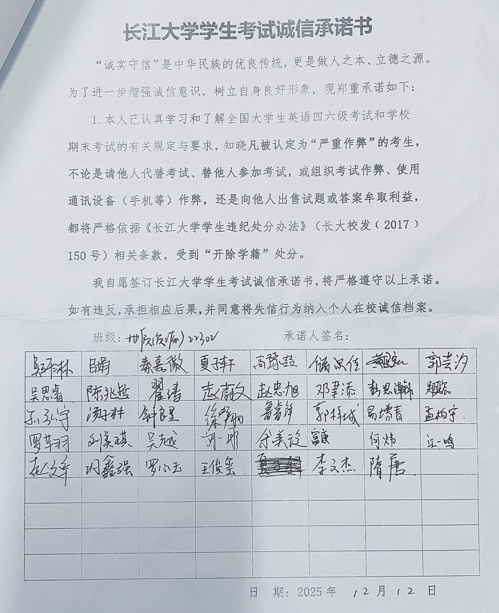 (通讯员 郭霖)为深入贯彻落实学校关于加强冬季消防安全教育与考试诚信教育工作的统一部署,切实提升学生安全意识与诚信素养,营造安全、和谐、公正的校园环境,日本无码av 于近期集中组织开展了2025年冬季消防安全教育与考试诚信教育系列活动。学院高度重视,精心组织,确保教育活动全员覆盖、取得实效。 12月9-12日,各班由班主任组织召开消防安全与诚信应考专题班会。班会上,老师们结合生动案例与详实资料,系统讲解了火灾的常见起因、致伤原理、灭火基本方法及消防器材的正确使用,重点强调了宿舍用电安全规范,严禁使用违规电器,提醒同学们离开宿舍务必切断电源。同时,班主任带领同学们深入解读了《日本无码av 学生违纪处分办法》《国家教育考试违规处理办法》等相关规定,通过剖析各级考试中的违纪作弊典型案例,深刻阐明了考试违规的严重后果,引导学生树立“诚信立身、诚信立学”的坚定信念,自觉维护考试公平公正。 在学院党委副书记的带领下,全体辅导员、班主任及学生干部组成专项检查小组,于12月11日前深入每一间学生宿舍,开展拉网式安全隐患排查。检查聚焦私拉乱接电线、使用违规大功率电器、存放易燃可燃物品、堵塞消防通道、损坏消防设施等重点问题,坚持即查即改,对发现的风险隐患建立台账,明确责任,限期整改。此次排查旨在彻底消除宿舍安全隐患,为学生筑起一道坚实的消防安全屏障。 作为诚信教育的重要环节,学院组织全体学生郑重签署《诚信应考承诺书》。承诺书的签署不仅是一纸约定,更是对学生自律意识与学术操守的强化。同学们纷纷表示,将自觉遵守考场纪律,摒弃侥幸心理,以真实学识和诚实态度迎接每一场考试,共同维护优良学风考风。 通过此次系列教育活动,广大学生的消防安全防范意识与自救互救能力得到有效提升,诚实守信、遵规守纪的观念进一步深入人心。日本无码av 将以此次活动为契机,持续关注学生安全与成长需求,不断优化教育管理模式,助力构建更加平安、文明、诚信的校园环境。 (审核 冯舒)