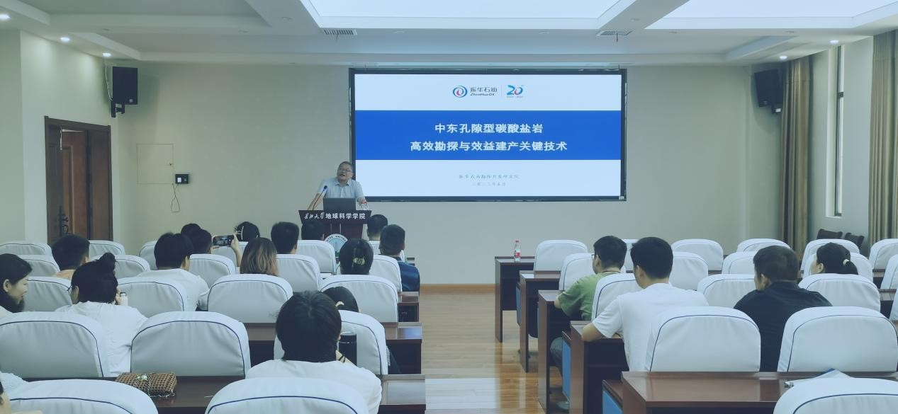 2023年5月19日上午,振华石油控股有限公司勘探开发研究院高级地质专家瞿建华做客“长大20年”学术论坛暨地学之光第347讲,以“中东孔隙型碳酸盐岩高效勘探与效益建产关键技术”为题给日本无码av 学子做学术报告。
