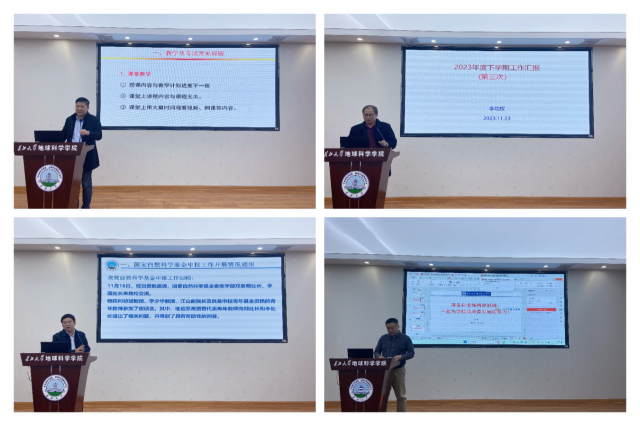 副院长吴楠就海外青年学者论坛、地质学博士点申报、高层次人才引进等方面进行了通报与安排。吴楠强调,人才引育和学科发展是学院发展最重要的两个方面,两者相辅相成。学院发展关键是人才,人才是内涵式发展的根本,未来要把人才引育作为头等大事来做。