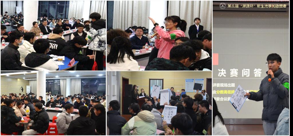 本次竞赛分为初赛和决赛两个阶段。初赛为必答题,决赛分为抢答题和指定答题两个环节。初赛开始前随机将16支队分为AB两组,每组取前四进入决赛。各队进行简单的自我介绍后,比赛正式开始。初赛环节以选择题和判断题的方式,主要考察学生对基础地学概念和知识的掌握情况。选手们积极思考,快速作答,展现出良好的知识储备和心理素质。两轮初赛及多轮加赛后,最终8支队伍进入决赛。
